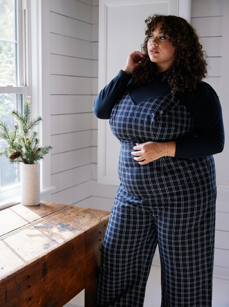The Maude is as versatile as it is stylish. Made in our crisp, breathable cotton featured in a black and white plaid pattern, this jumpsuit is designed with adjustable straps and a hidden back zip closure for easy on and off. With a wide leg silhouette, this sleeveless jumpsuit makes a statement on its own or paired with a tee or long sleeve underneath. Wear with your favorite sweater or jacket on top for an effortless look.