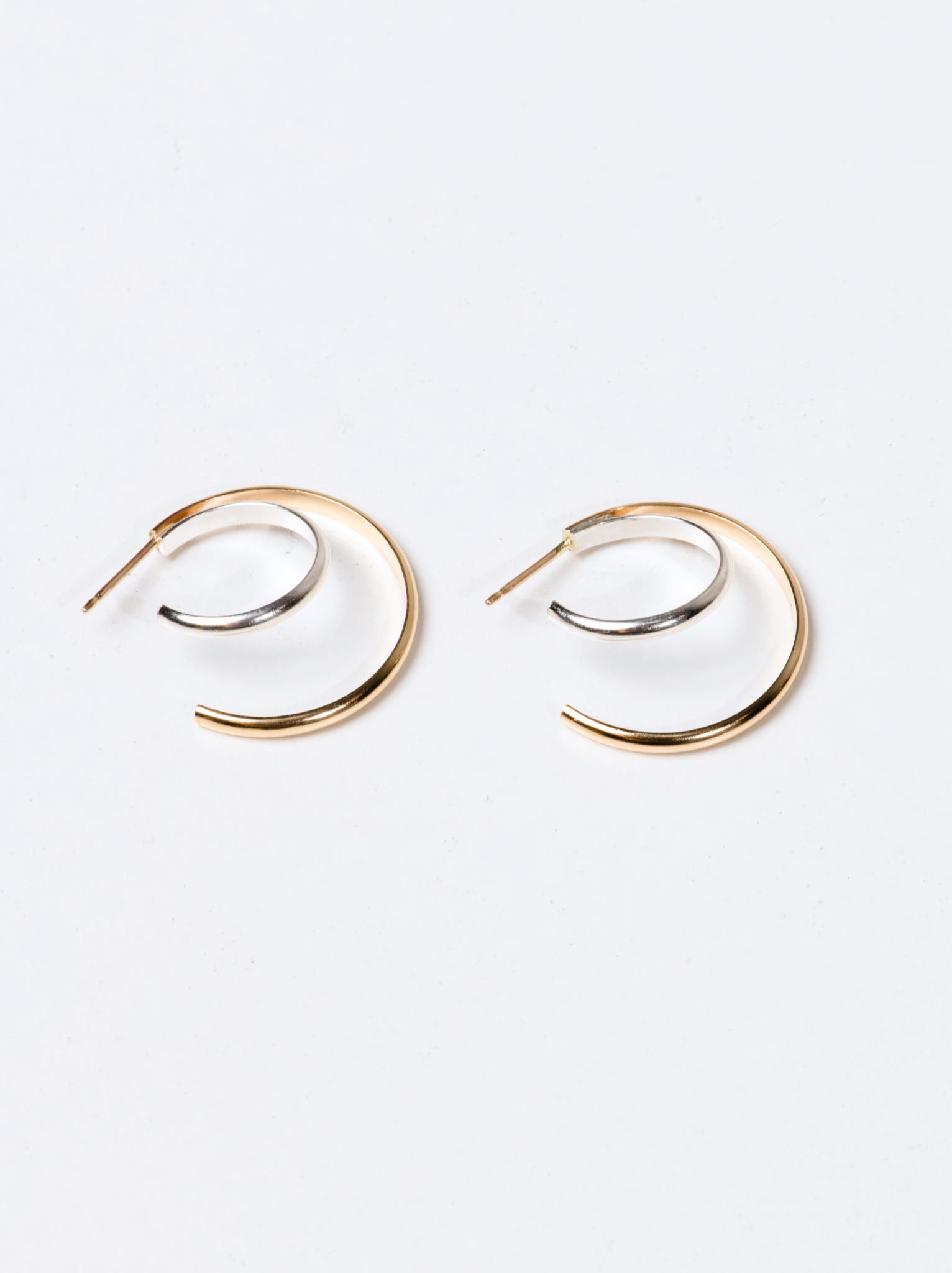 The Tully Hoops are the perfect blend of modern elegance and versatile style. Featuring a unique two-tone design, these hoops intertwine a sleek silver wire with a warm gold wire, creating a striking contrast that’s both eye-catching and sophisticated. The mix of metals adds depth and dimension, making these hoops ideal for any occasion - perfect for dressing up or adding a touch of elegance to your everyday look. Versatile and effortless while making a statement, the Tully Hoops are a must-have addition to your jewelry collection, seamlessly elevating your style.