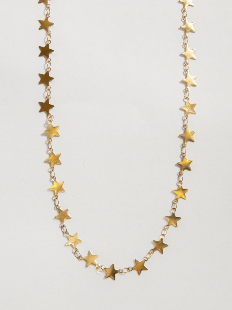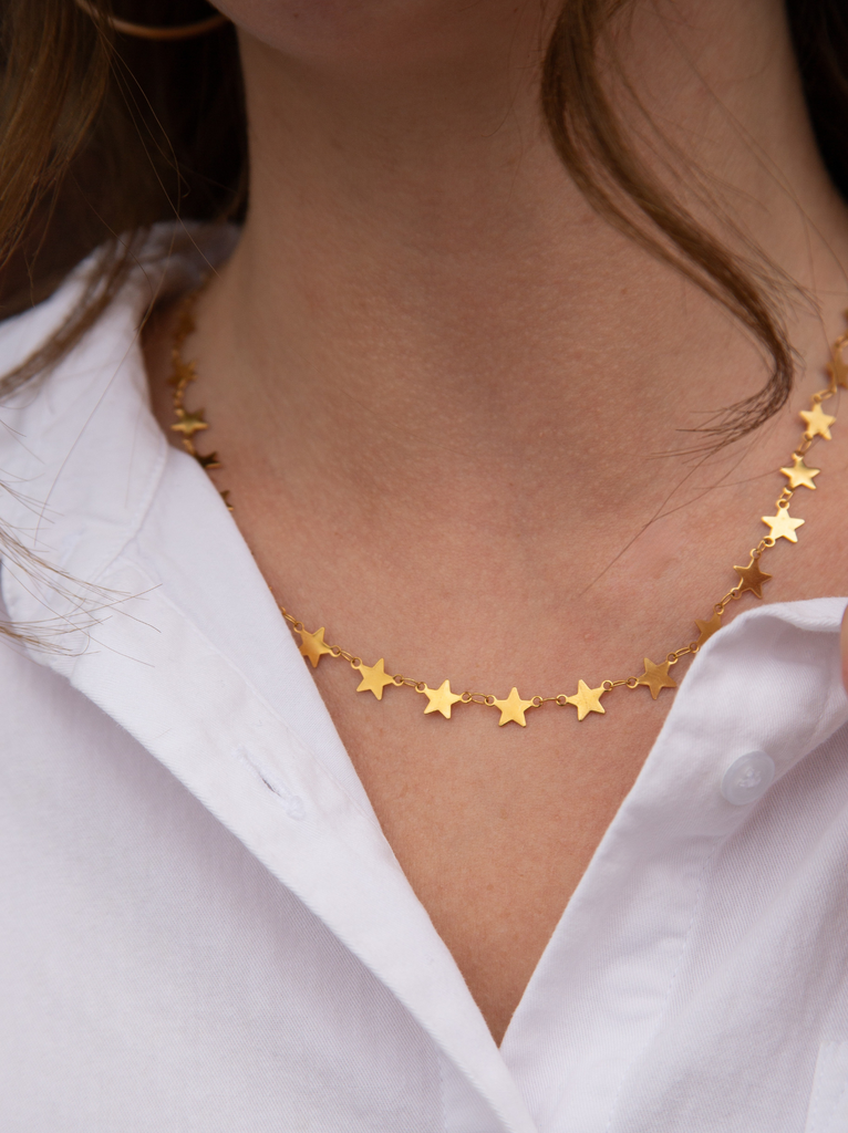 Shine a little brighter in the Celeste Necklace — a delicate gold chain dotted with tiny stars that catch the light and turn heads. Handmade in our Nashville jewelry studio by our incredible team of women makers, this piece is more than just beautiful — it’s the star of the show. Wear it alone or layered — either way, you’ll sparkle.