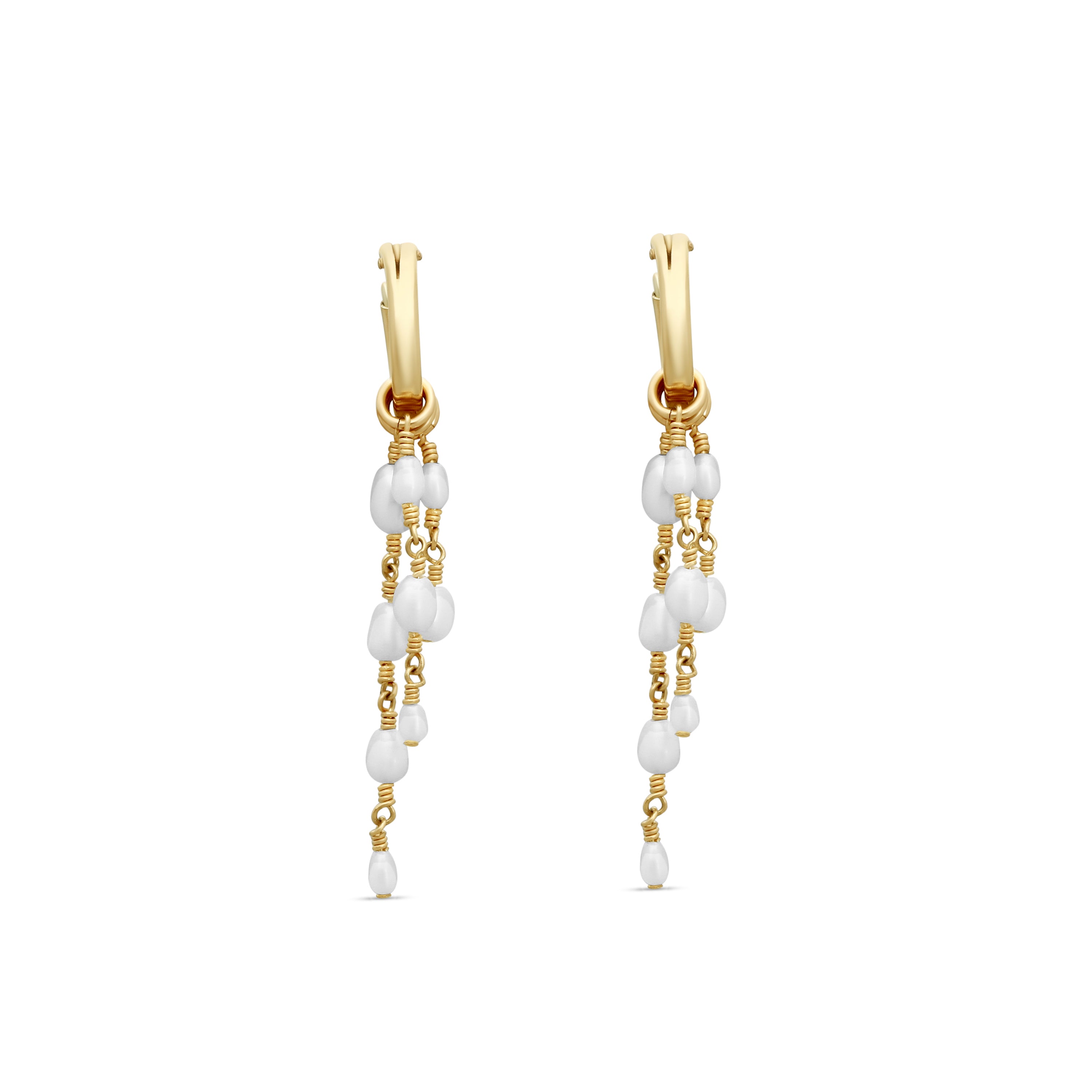 A cool-girl statement with heirloom-level craft. These pearl cascading earrings feature freshwater pearls individually hand wire-wrapped and suspended from 14K gold-filled hoops for soft movement and luminous dimension. The cascading silhouette feels effortless but elevated, the kind of piece that turns a simple outfit into a LOOK.