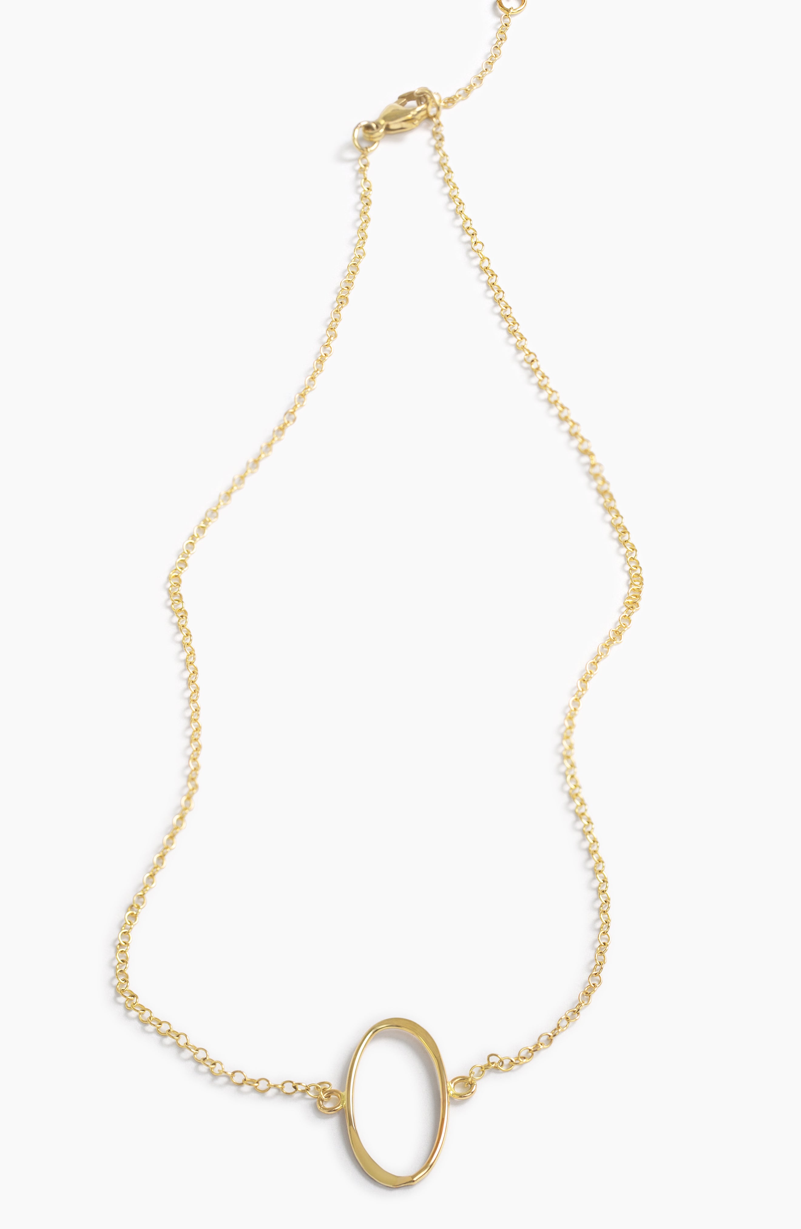 The Hazel Oval Necklace captures the beauty of imperfection through an oval pendant, lightly hammered for organic texture and shine. Crafted entirely from 14K gold fill, its open-oval silhouette rests delicately at the collarbone, simple, luminous, and endlessly wearable.