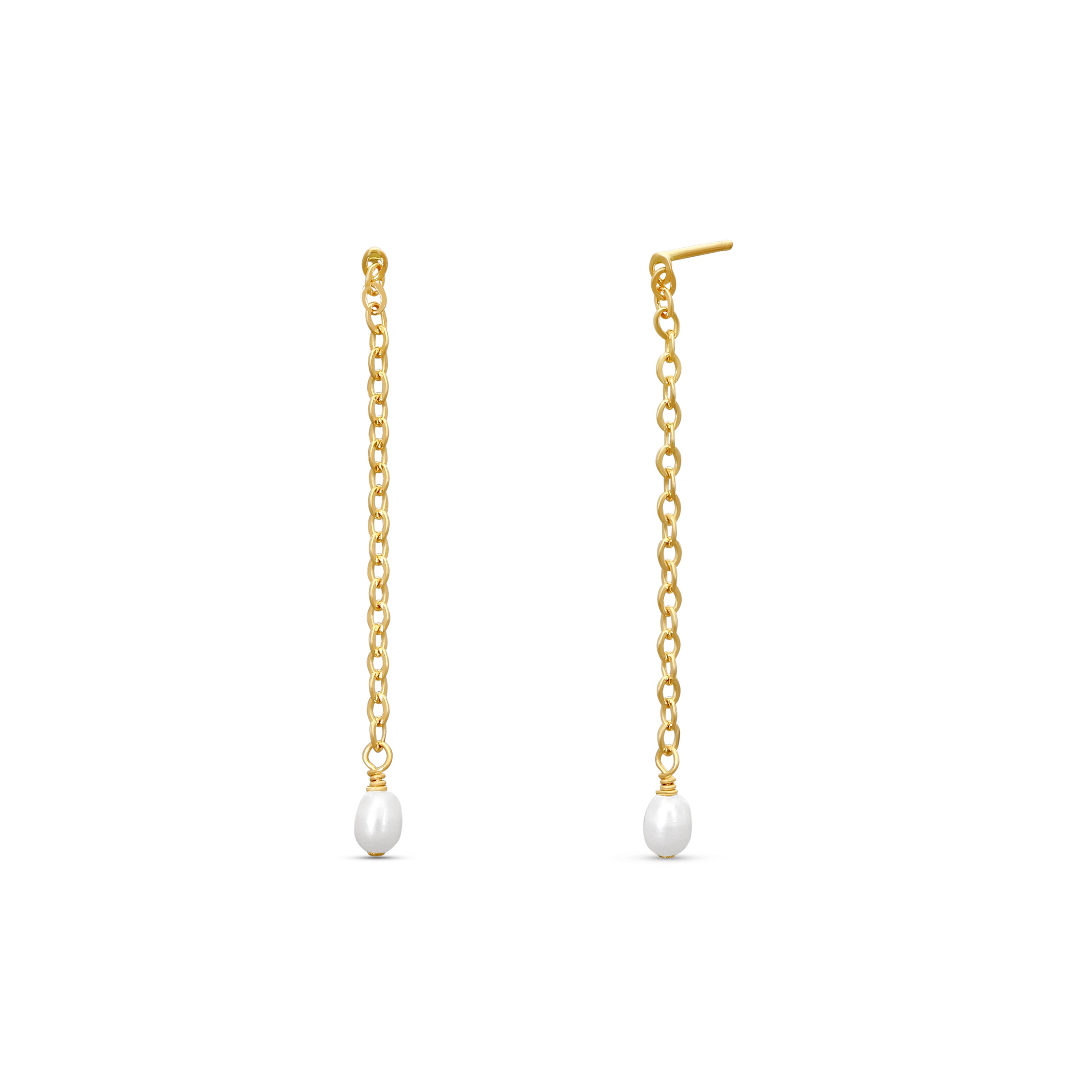 An instant upgrade for your everyday ear stack. The Iris Long Pearl Drop Earrings feature luminous freshwater pearls suspended from a delicate 14K gold-filled chain for an elegant, elongating silhouette. Designed for a second piercing, Iris pairs perfectly with the Lila Short Pearl Drop to create a layered, luxe take on your favorite studs.