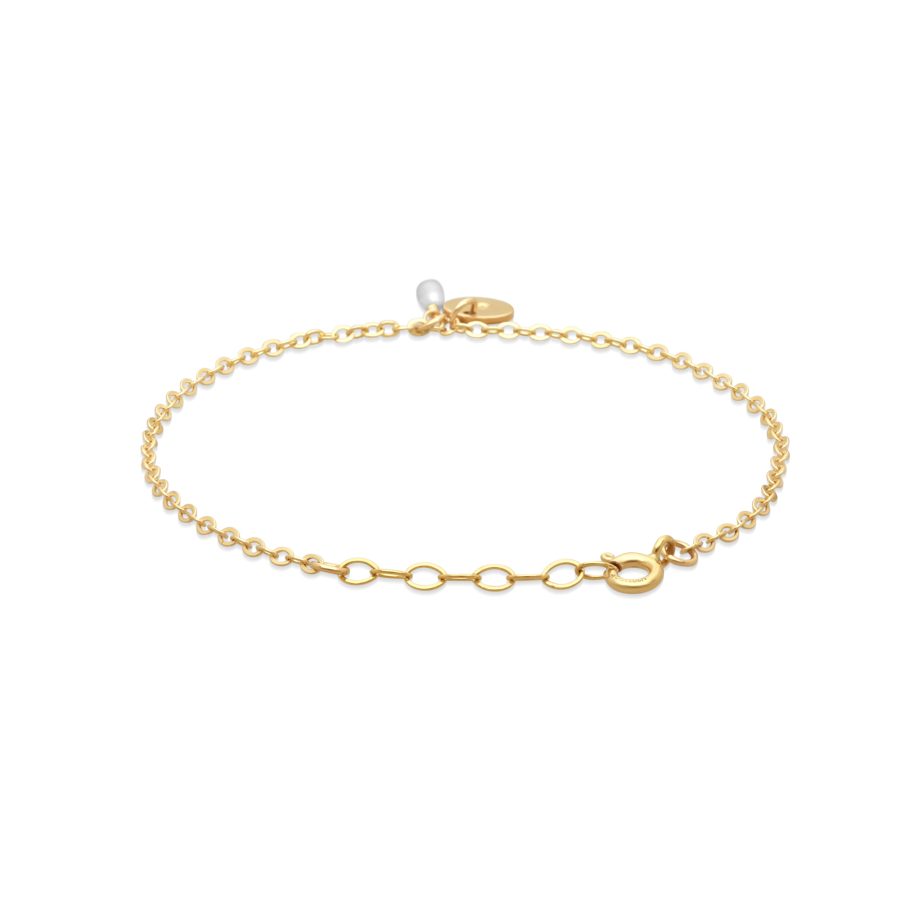 Effortless, personal, and made to layer. The Wren Lux Chain Bracelet features a refined 1.8mm gold-filled chain finished with a mini tag charm and a luminous freshwater pearl for just the right hint of softness. Wear it as-is for a minimal, elevated everyday look — or personalize the tag with an initial for a subtle signature you’ll never want to take off.